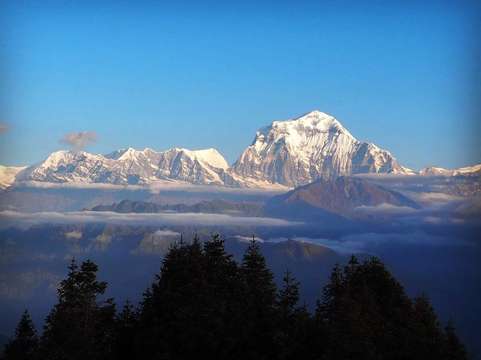 De madrugada con la frontal, caminamos hasta Poon Hill (3200 m), un mirador de montaña, desde donde se puede ver la salida del sol y una amplia vista panorámica del Dhaulagiri y el circo de los Annapurnas, regresando a desayunar a Ghorepani y continuando nuestro trek hasta Tadapani (2590 m), lugar que nos ofrece hermosas vistas de las montañas Annapurna sur, Himchuli, Gangapurna y otras. Alojamiento en Lodge.