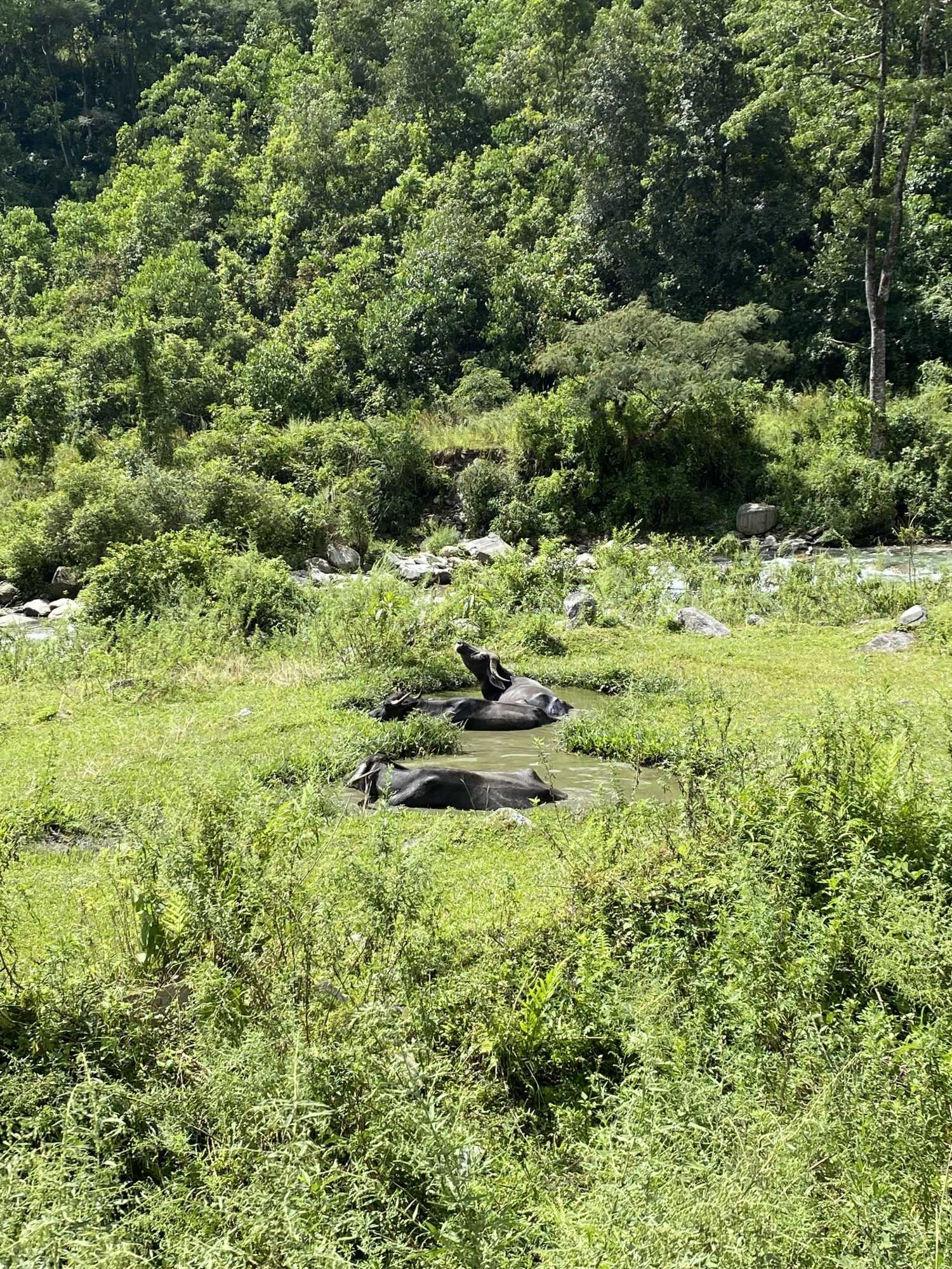 Descendemos hasta el pueblo de Jhinu Danda, famoso por sus presas de aguas termales, donde podremos aprovechar para darnos un estupendo baño y relajación muscular. Alojamiento en Lodge